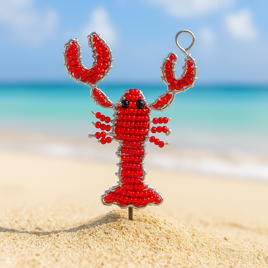 Beaded Lobster Keyring – Handmade Coastal Accessory by Haitian Artisans.