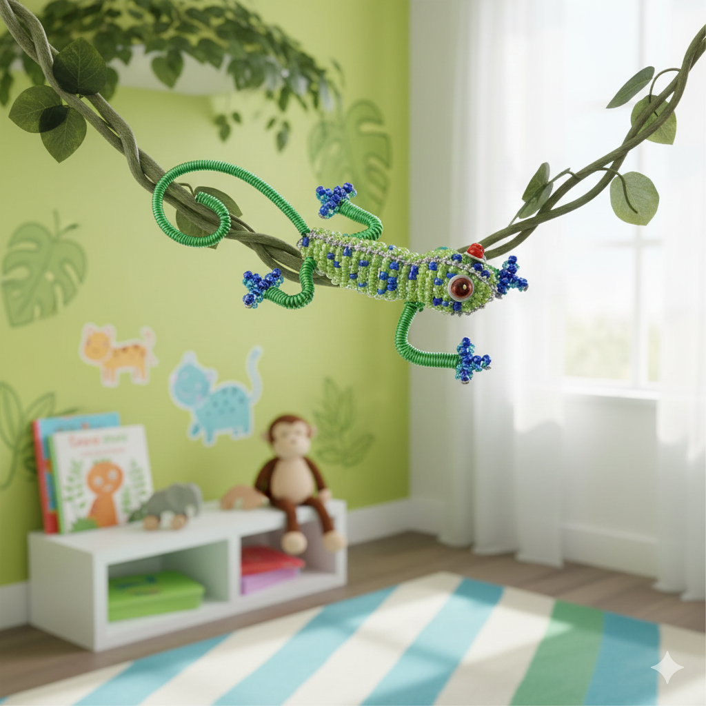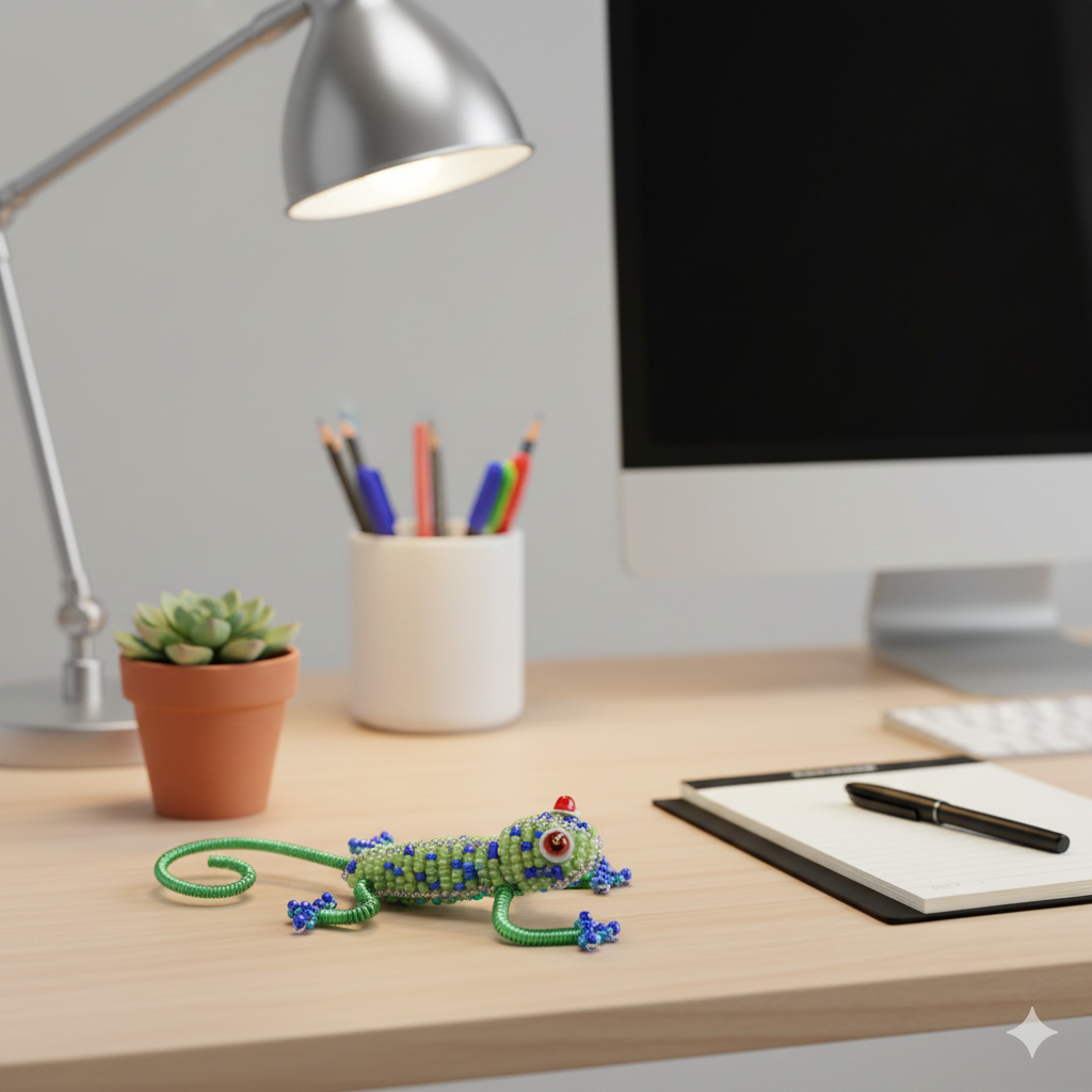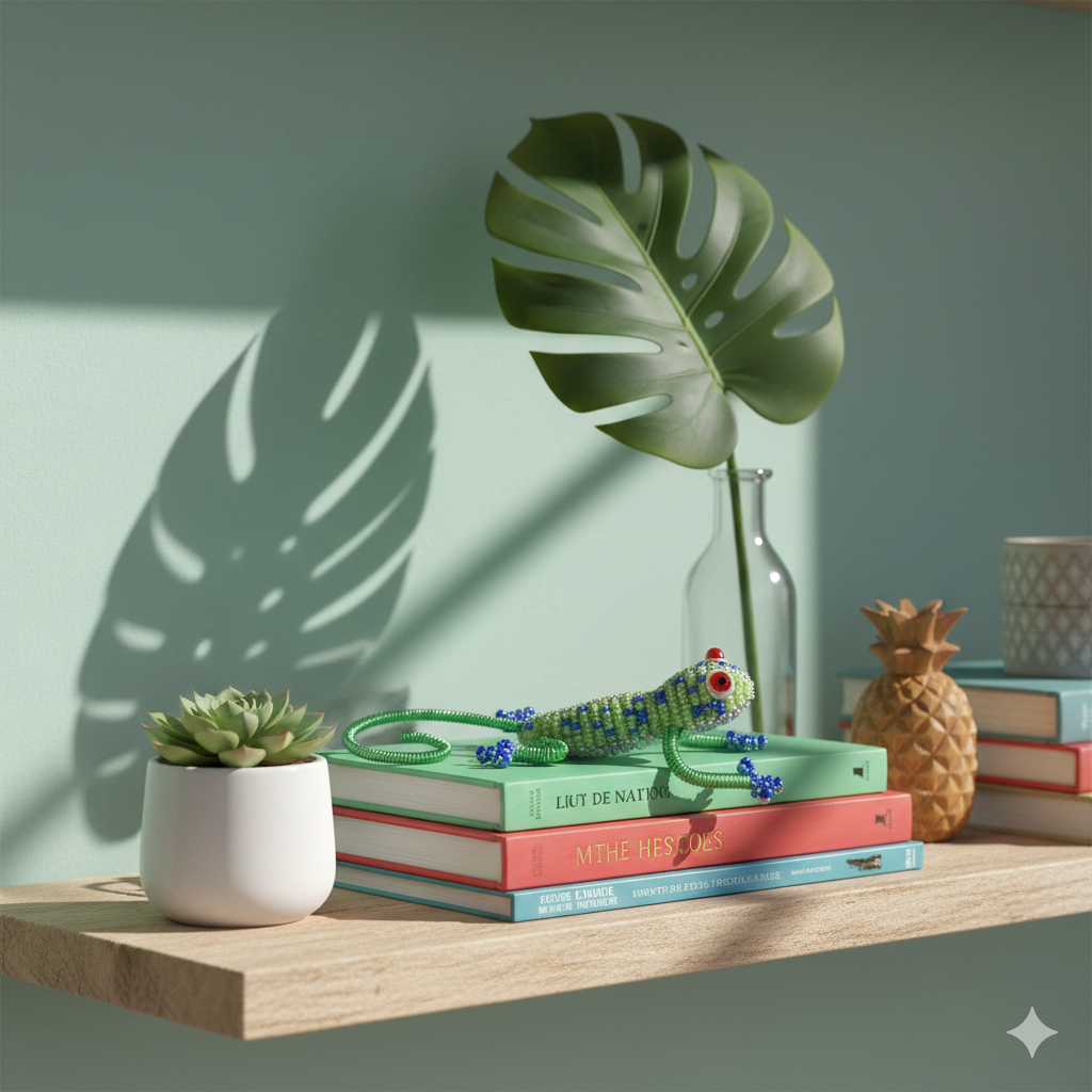 Handmade Beaded Mini Gecko – Haitian Artisan Lizard Figurine.