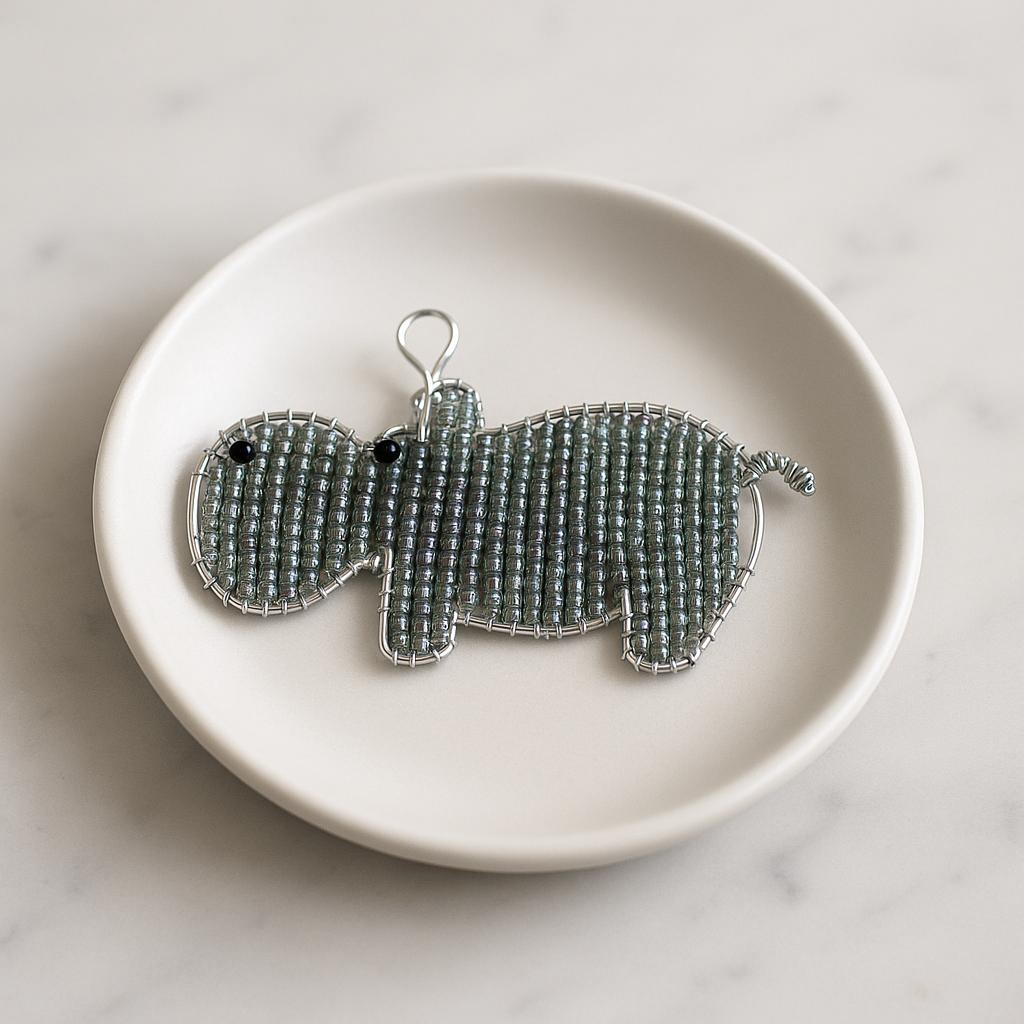 Hippo Keyring – Handcrafted Beaded Animal Charm.