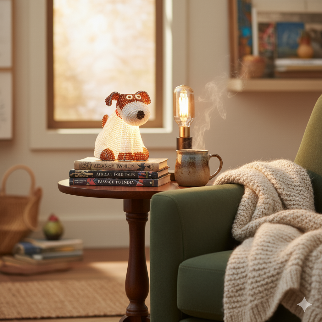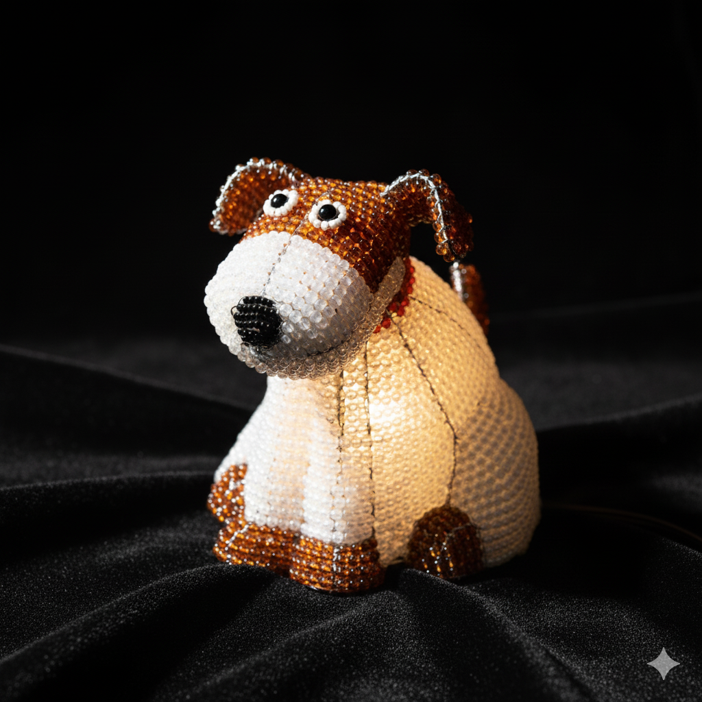 Haitian Beaded Dog Lamp Sculpture - Artisan Wire & Bead Art.