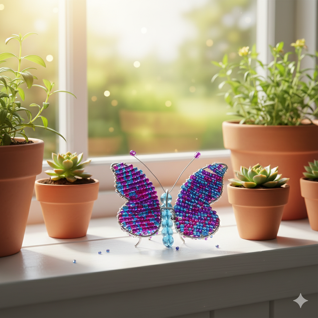 Handmade Beaded Mini Butterfly – Colorful Artisan Decor from Haiti.
