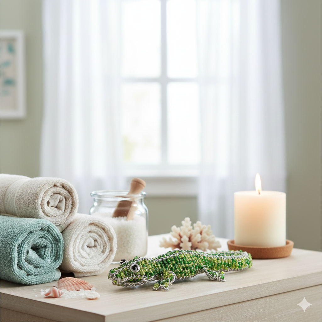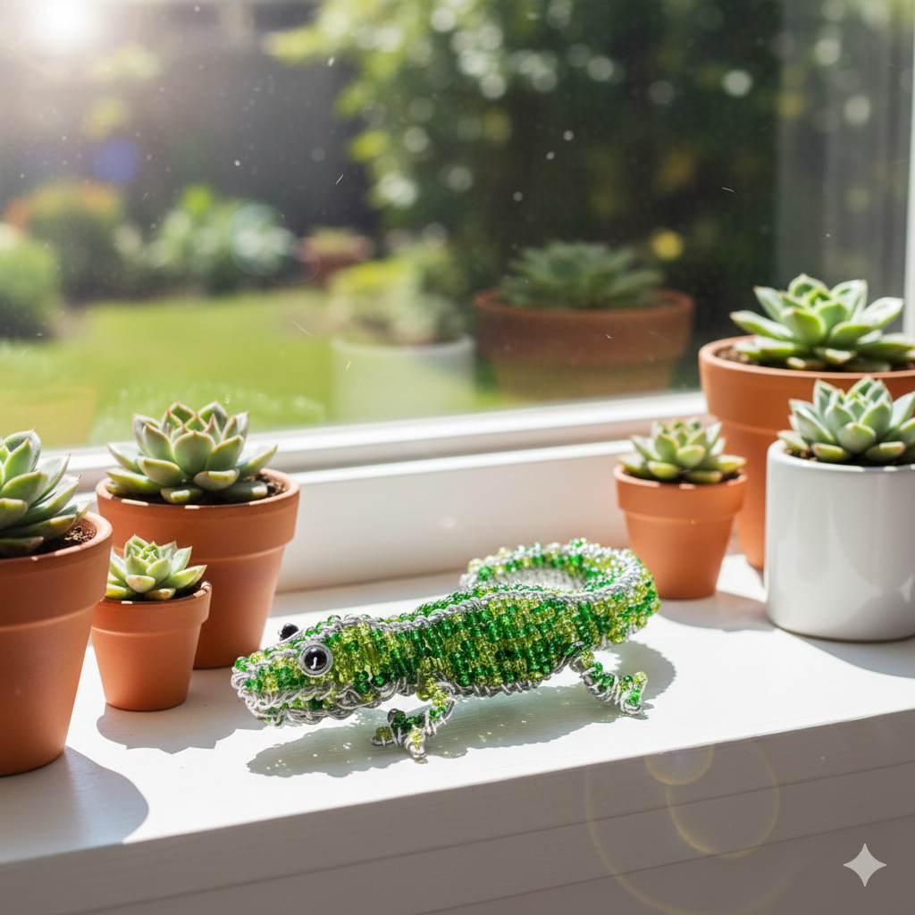 Handmade Beaded Mini Gator Figurine – Haitian Artisanal Décor.