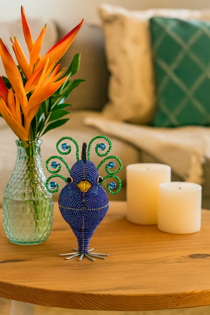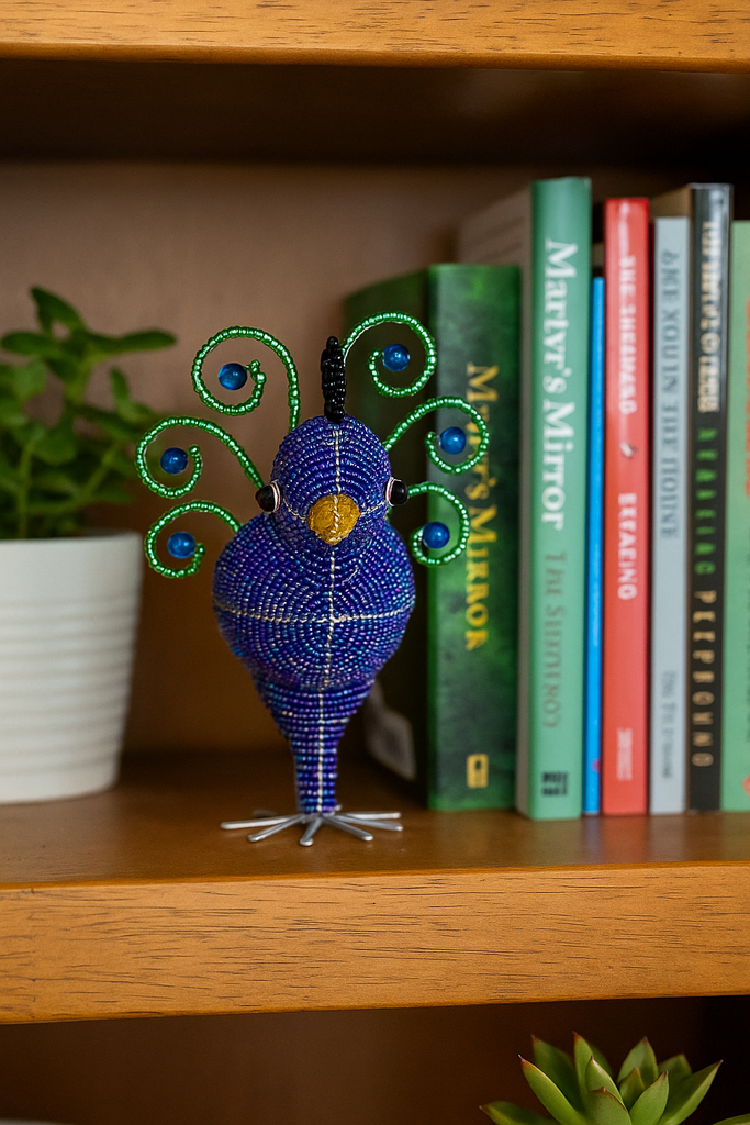 Beaded Baby Peacock Sculpture – Handmade by Haitian Artisans.