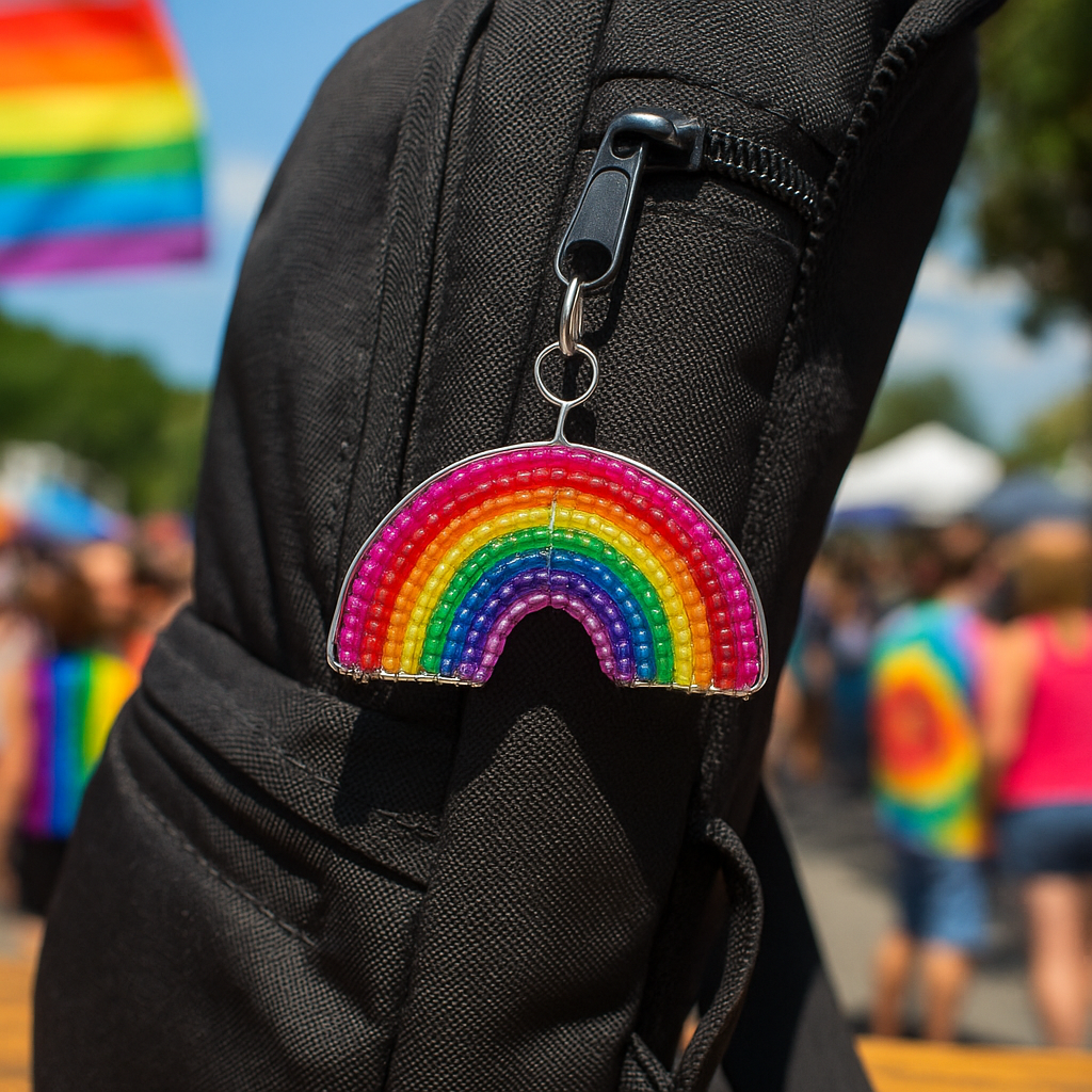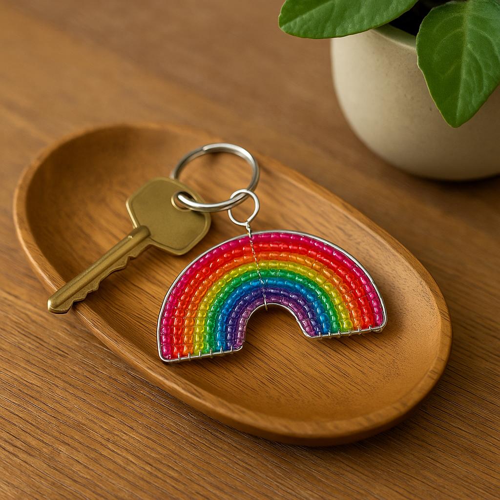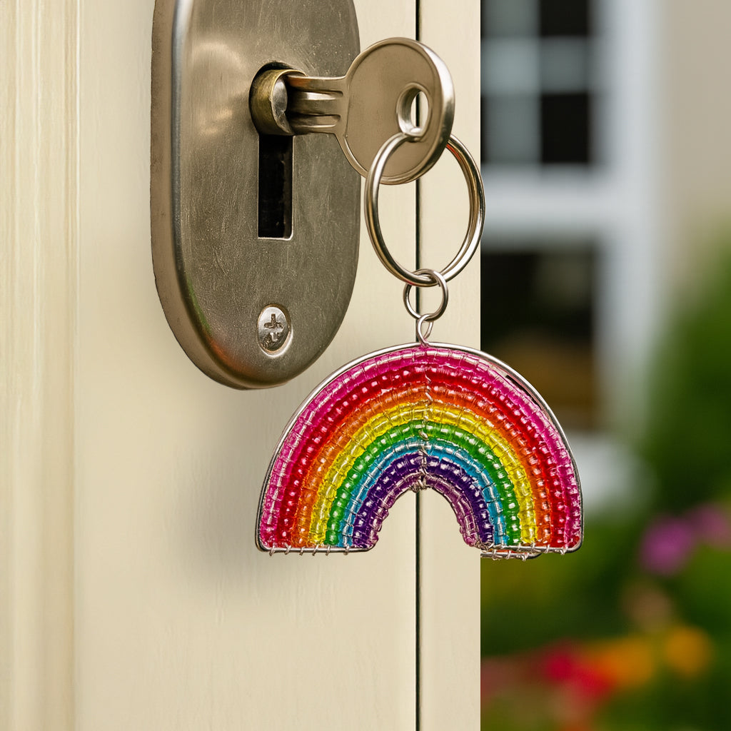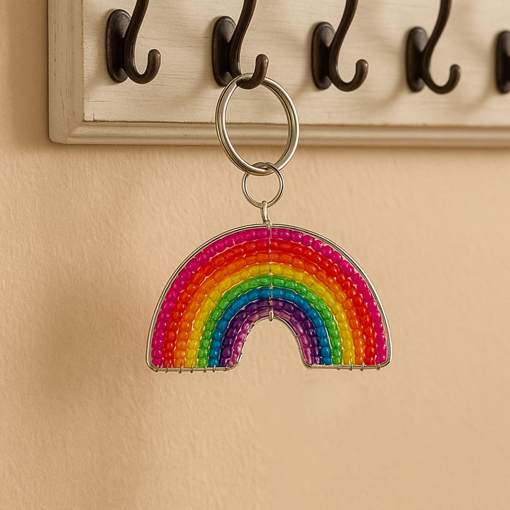 Handmade Beaded Rainbow Keyring – Haitian Artisan Keychain.