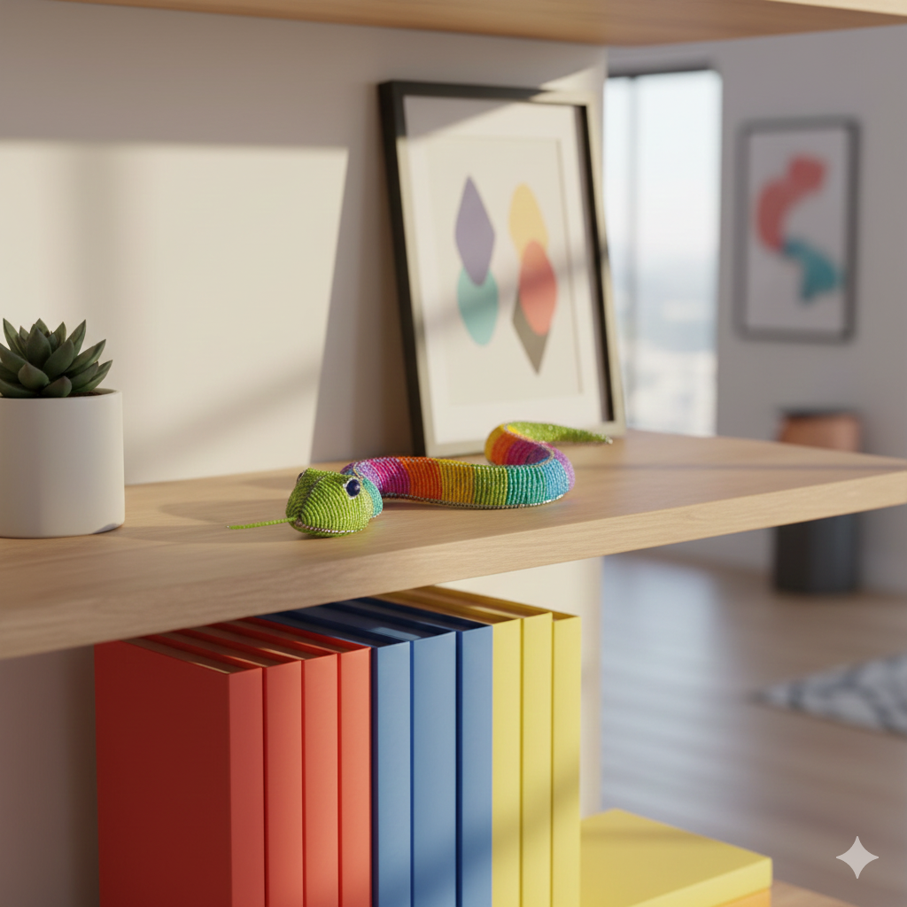 Handmade Beaded Rainbow Large Snake – Haitian Artisan Decor Figurine.