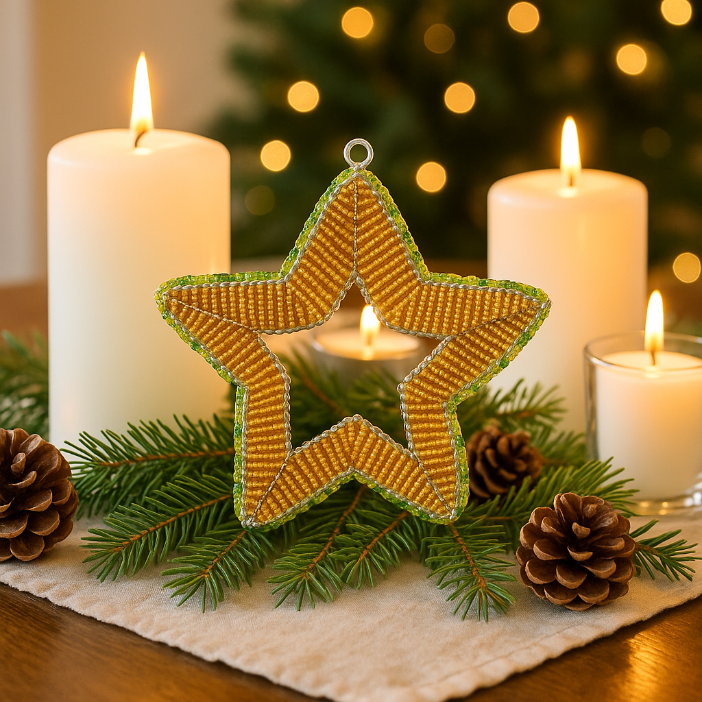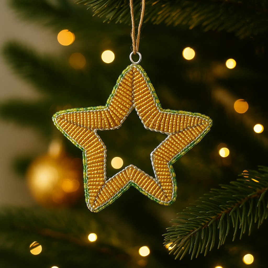 Handmade Beaded Star Ornament – Haitian Artisan Holiday Décor.
